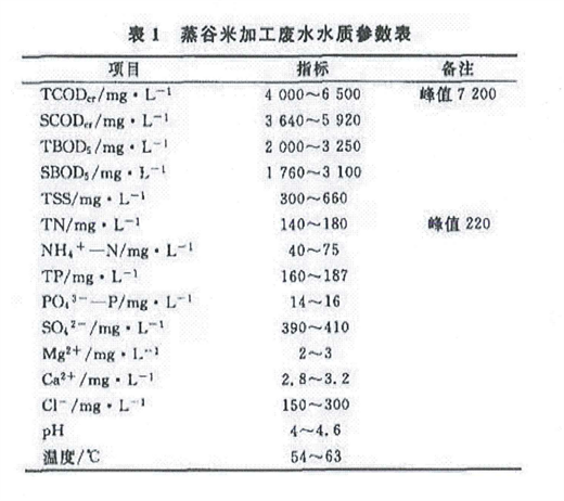 蒸谷米食品加工污水水質分析: