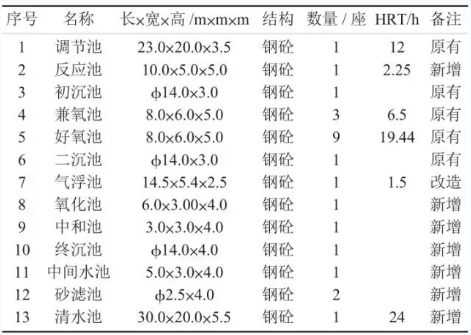 面對(duì)新的生產(chǎn)情況及《浙江省印染行業(yè)淘汰落后整治提升方案》要求,企業(yè)決定對(duì)現(xiàn)有廢水處理設(shè)施進(jìn)行擴(kuò)建、改造,并增加回用水處理設(shè)施,實(shí)現(xiàn)50%的中水回用率。工程總設(shè)計(jì)水量為4000m3/d,其中在原有污水站設(shè)計(jì)能力2400m3/d的基礎(chǔ)上新增設(shè)計(jì)水量1600m3/d。
